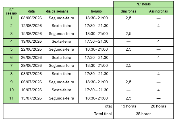 (3h síncronas online + 4h trabalho assíncrono)